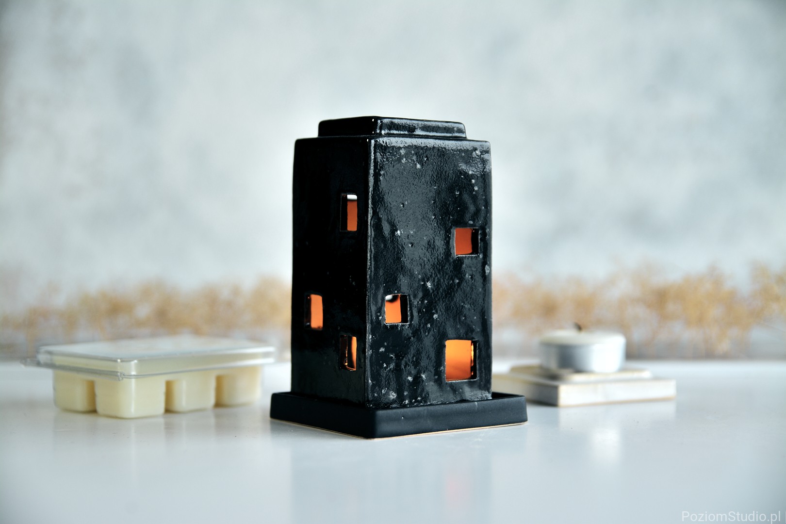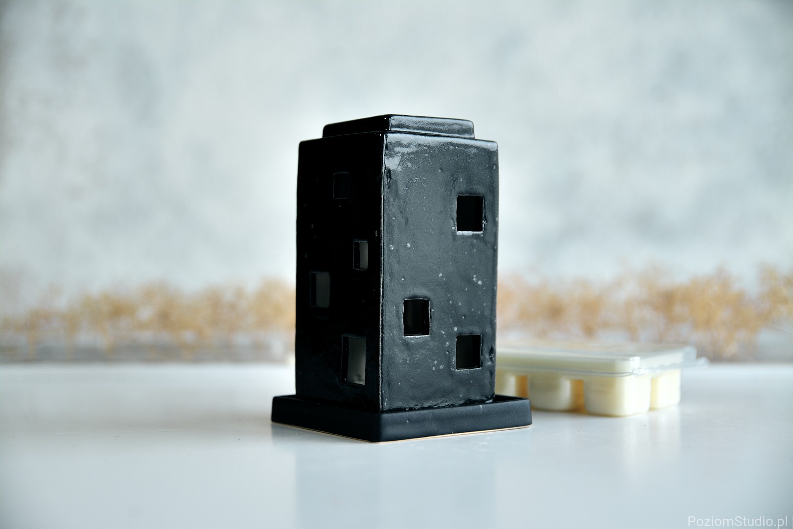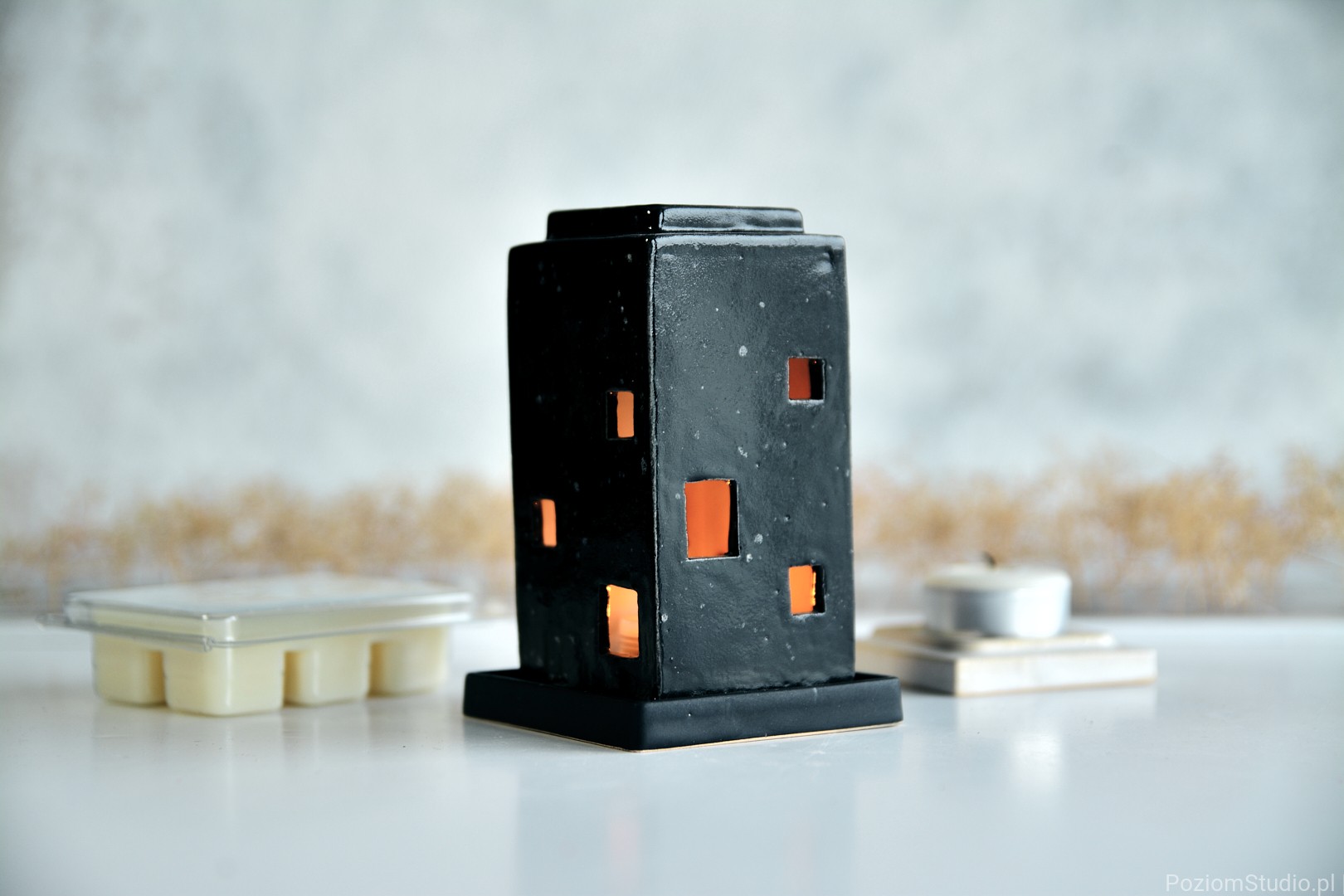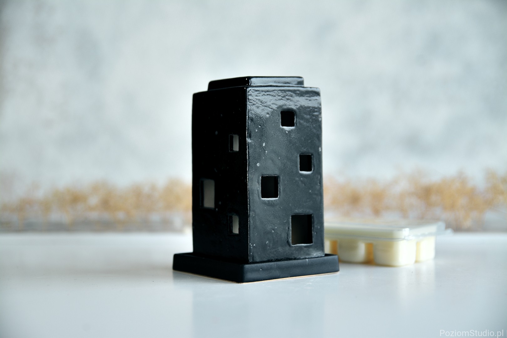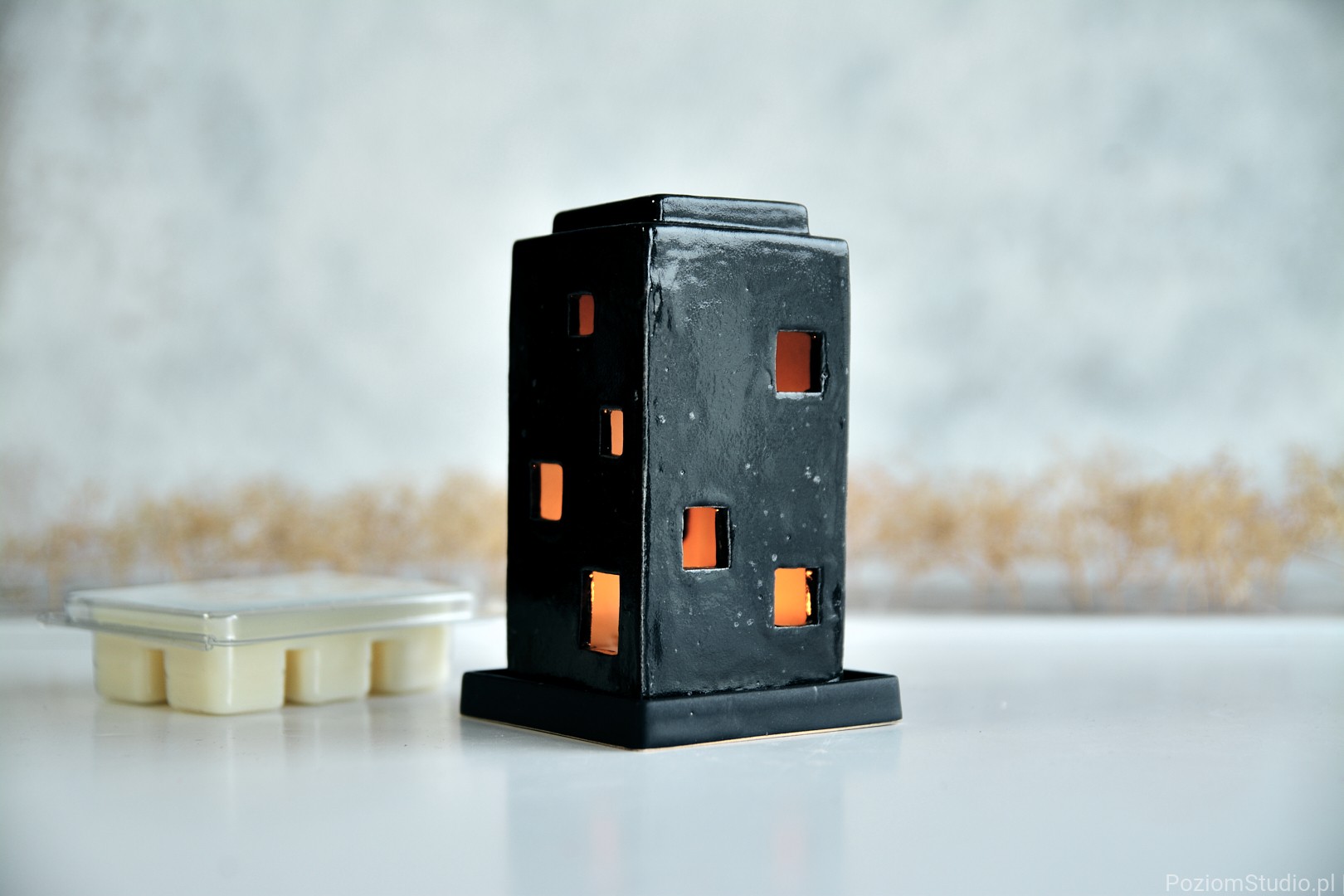 Wosk i ceramiczny domek tworzą razem spójną całość – przedmiot, który nie tylko pachnie, ale też buduje nastrój i dopełnia wnętrze.